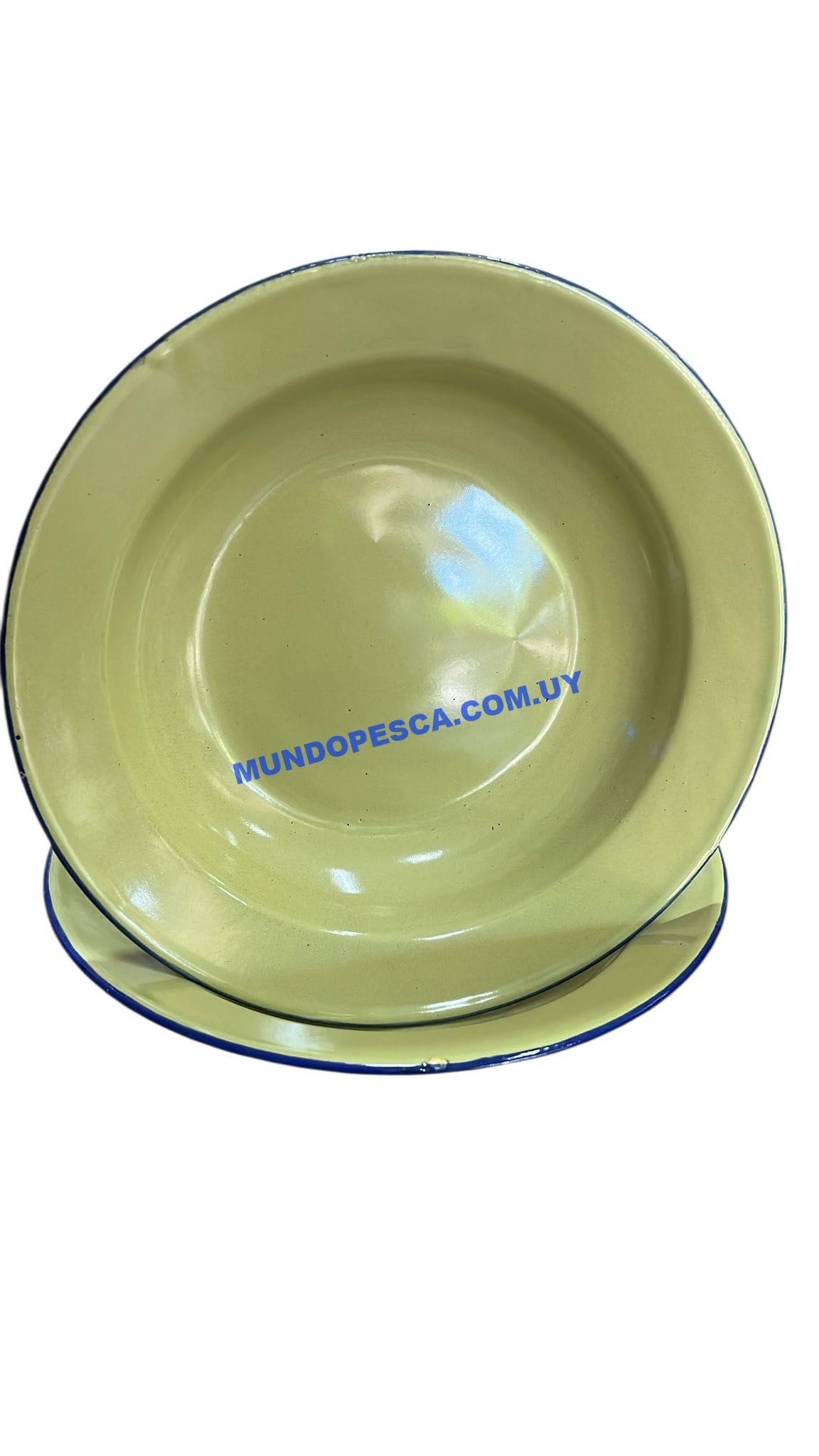 Plato esmaltado resistente, liviano y fácil de limpiar. Ideal para camping, pesca y actividades al aire libre. Apto para uso diario.