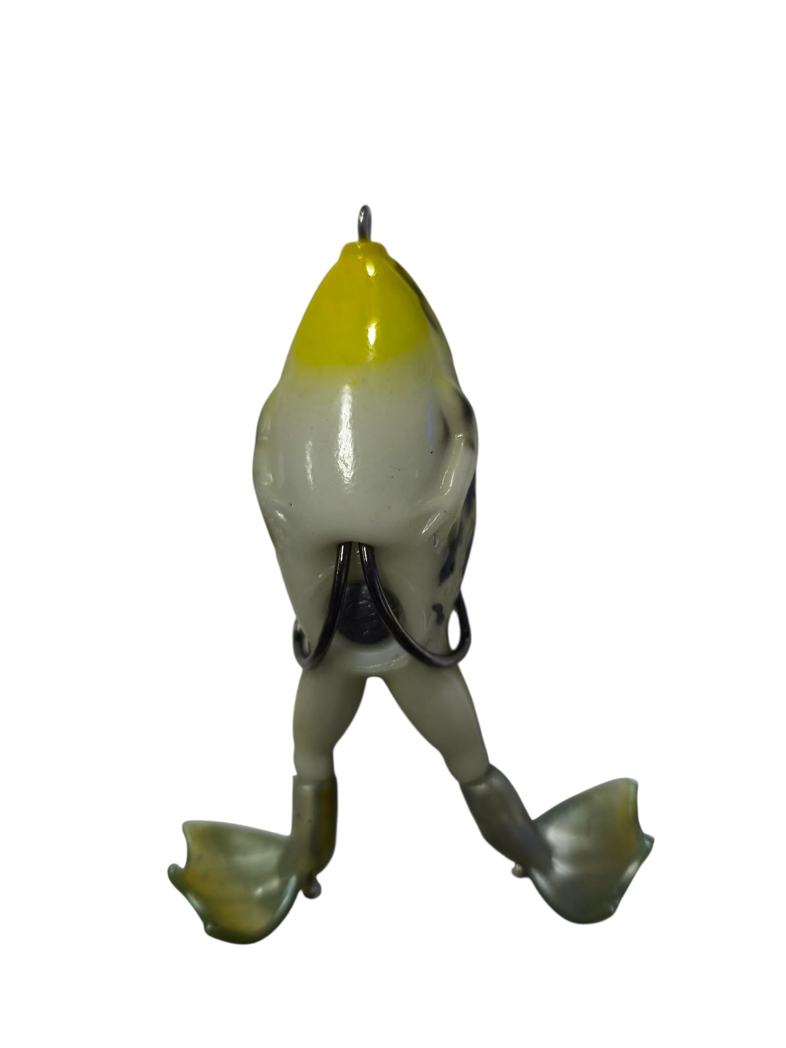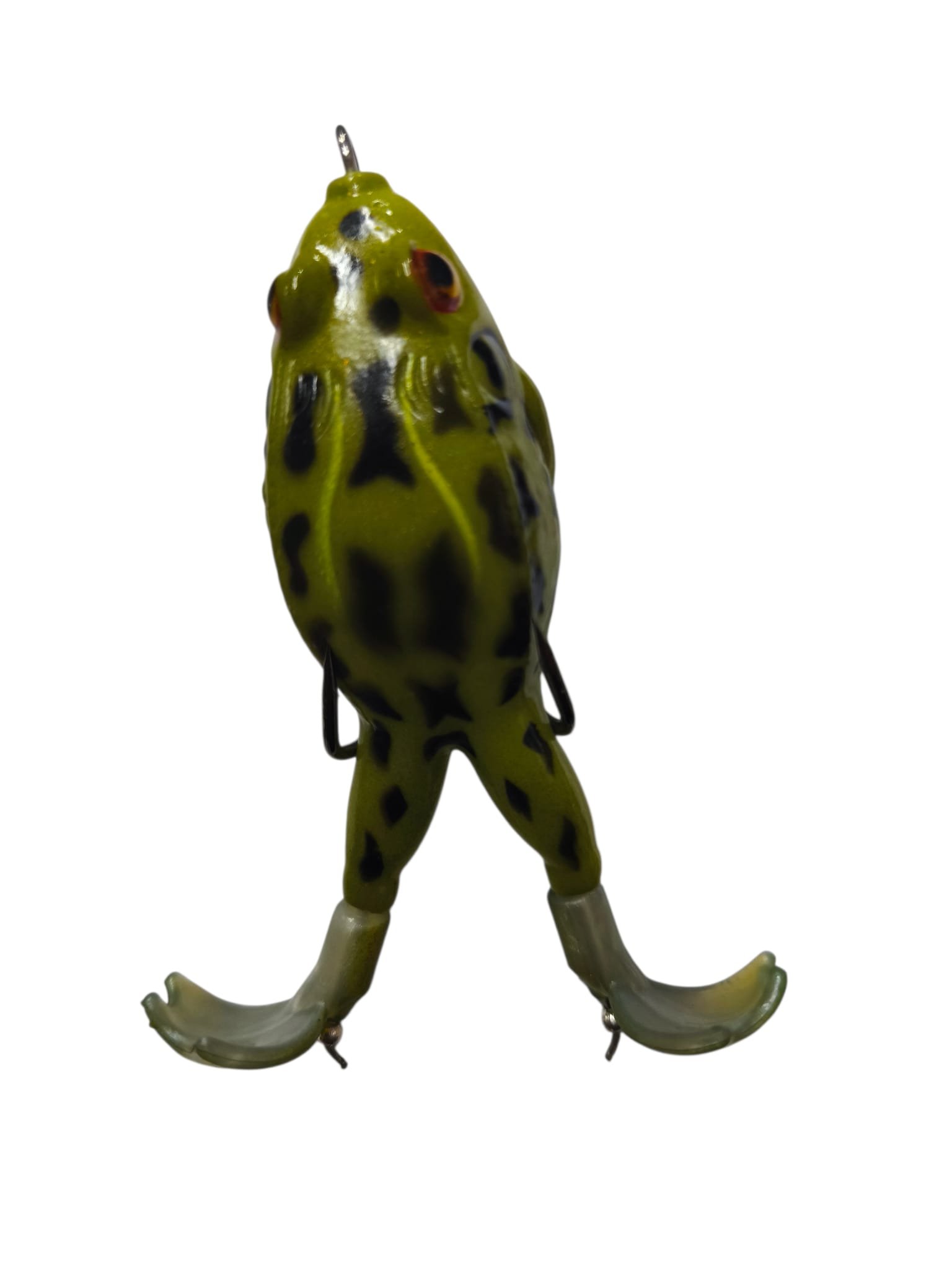 El cuerpo blando y las patas rotativas simulan una rana real nadando en superficie, provocando ataques agresivos de tarariras y otros peces predadores.